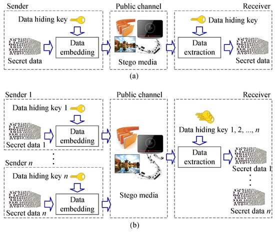 Ideas of (a) single source and (b) multisource data hiding.