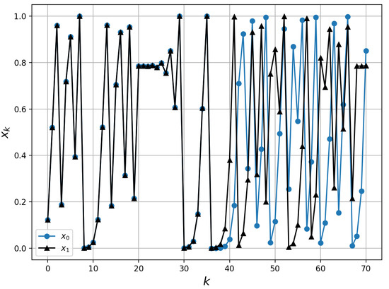 Dynamical systems with chaotic behavior describe many physical phenomena. Their particular application is cryptography based on the chaos theory, which uses these types of recurrences to keep data secure [1,2,3]. This is possible due to the properties of chaotic maps, such as random-like behavior and sensitivity to changing initial conditions and, at the same time, the deterministic method of obtaining successive states. In chaotic cryptography, the values of the initial conditions and parameters are treated as secret keys.