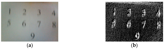 (a) Normalized Sobel gradient of the image along the x-axis; (b) normalized Sobel gradient of the image on the y-axis at 70 lux.