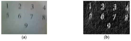 (a) Sobel operator on the x-axis; (b) Sobel operator on the y-axis at 2350 lux.