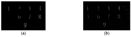 (a) Sobel operator on the x-axis; (b) Sobel operator on the y-axis at 260 lux.
