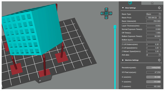 View of models prepared for printing in slicing software—a part of the Photon Workshop 2.1.21 interfaces [authors’ own study].
