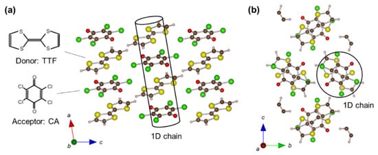 - Giovannetti, G.; Kumar, S.; Stroppa, A.; Van Den Brink, J.; Picozzi, S. Multiferroicity in TTF-CA organic molecular crystals predicted through Ab initio calculations. Phys. Rev. Lett. 2009, 103, 266401. [Google Scholar] [CrossRef]