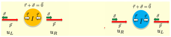 In Figure 2, we show how a light up-quark helicity in a zero mode is flipped when crossing an instanton (left) or anti-instanton (right). In the zero mode, the quark spin is locked to the color in a hedgehog-like configuration with . This flipping is captured by the t Hooft vertex for a single quark flavor [22]. More specifically, the LSZ-reduced forward scattering matrix for the zero mode in Figure 2 is in the Euclidean signature below: