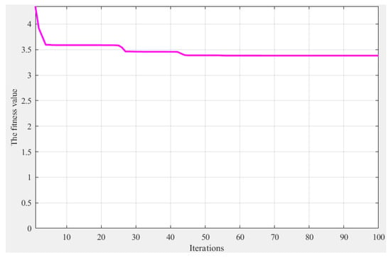 The fitness function value obtained by the method using PSO changing with the number of iterations was as shown in Figure 4.