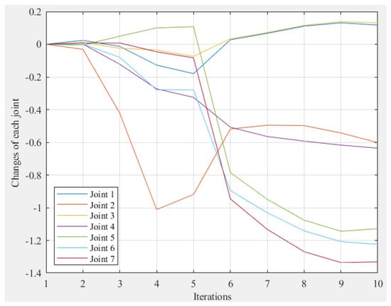 The changes of each joint with the iterations that obtained by IPSO were shown in Figure 8.