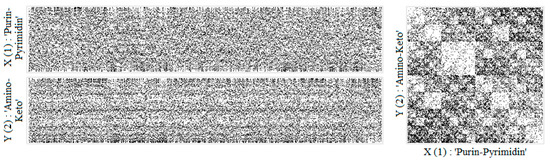 Each nitrogenous base of the genetic information has three binary representations. S.V. Petoukhov binary sub-alphabets represent a type of presentation variant. The binary sub-alphabets in the set of nitrogenous bases differ according to the kinds of boolean properties: C = T “pyrimidines”/A = G “purines”; A = C “amino”/G = T “keto”; C = G has 3 hydrogen bonds and A = T has two hydrogen bonds. Based on the boolean properties method for scale-parametric analysis of large nucleotide sequences described in [16,17,18,19,20] is as follows: