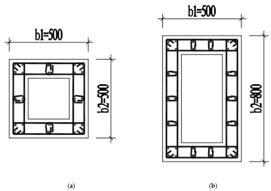 The geometry of the cross-section (units: mm). (a) Square hollow section, (b) Rectangular hollow section.