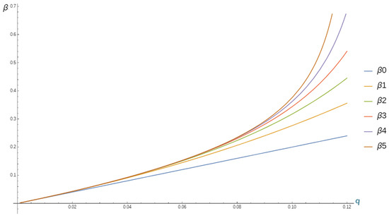 where and . It is easy to check that , for , and the condition in Equation (8) is met. If we choose , then we find that Equation (9) holds. Now, we have