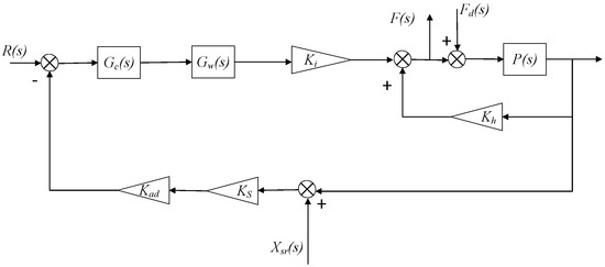 According to the control block diagram, for the convenience of analysis, , and are recorded as interference input D(s), and . The equivalent control block diagram is shown in Figure 4.