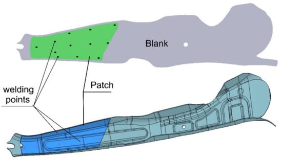 - Usage of a flat patch resistance, welded to the flat blank, which in the next step is hot stamped (Figure 4). In area, where the patch is used, the drawpiece features a higher stiffness comparing to other areas. These are so called patchwork blanks.