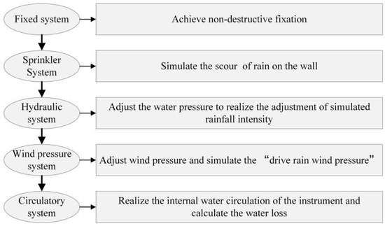 NDT-WI-2 consists of five components: fixed system, sprinkler system, water pressure system, wind pressure system and circulation system. Each system function is shown in Figure 1.