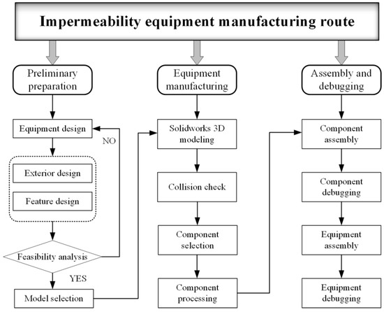 The manufacturing technology route of NDT-WI-2 was formulated as shown in Figure 2. It mainly includes designing the appearance and function of the instrument and confirming the instrument selection after theoretical analysis and modeling demonstration. On the basis of completing the preliminary preparations, the component processing and the debugging of the various functional modules of the instrument are carried out. Once the debugging is correct, the modules are assembled and the overall debugging of the instrument is finally completed.