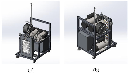 The whole design process of NDT-WI-2 is assisted by Solidworks software for 3D modeling. This software can perform real-time three-dimensional observation of each module of the instrument, so as to fully grasp the entire design process [39,40,41]. Figure 3 shows the overall effect of modeling using this software. According to the above design and the selection of components, the NDT-WI-2 is assembled as shown in Figure 4. The instrument adopts a modular integrated design idea and integrates various subsystems on a high-performance load mobile platform, which provides great convenience for the use of the instrument and the development of on-site testing.
