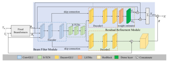 Figure 1 shows the overall diagram of the proposed architecture, which consists of three components, namely fixed beamforming module (FBM), beam filtering module (BFM), and residual refinement module (RRM).