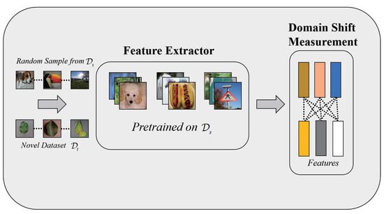 There are two main reasons for Few-Shot Learning (FSL) receiving increasing attention recently [1,2,3,4,5]. Firstly, though deep learning has achieved great success in visual recognition tasks, it greatly depends on plenty of labeled samples. However, collecting and labeling data always require high costs. Secondly, humans can learn quickly from a few samples, and even a child can identify pictures of a “zebra” after learning the concept of “zebra”. The current mainstream FSL algorithms are based on meta-learning [6,7,8,9,10,11,12]. The main idea of meta-learning-based algorithms mainly focuses on the model’s “learning to learn” ability so that the model can have a good generalization performance on the novel task. However, most FSL algorithms do not consider the domain shift between the source domain and the target domain. Due to the small number of labeled samples in the novel task, usually, FSL needs a source domain with a large number of labeled samples to train the model. Most FSL algorithms are evaluated on the same domains. For example, both the target domain and source domain are natural images. But many applications face a situation: collecting source datasets for a novel task in the same domain is not feasible or impossible. For instance, the novel task dataset is medical images, but a suitable dataset within the medical image area cannot be found. In this case, CDFSL is very valuable for practical application. Whether it is agricultural data or medical data, CDFSL can be applied [13,14,15].