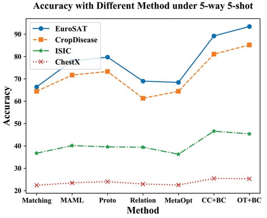 Schematic diagram of accuracy with different method under 5-way 5-shot. BC indicates Box-Cox.