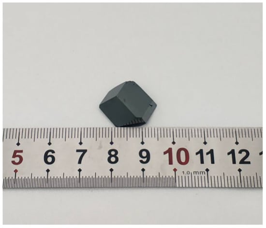 A pristine MAPbI3 single crystal synthesized by the ITC method is shown in Figure 1. A black and shiny crystal of MAPbI3 was formed, which exhibited facets consistent with rhombohexagonal dodecahedrons.