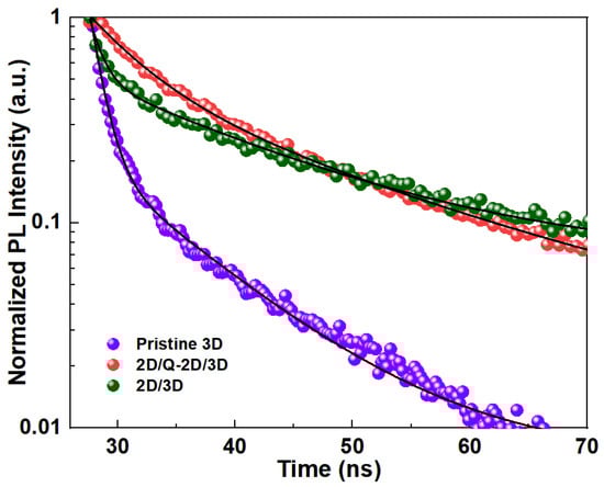 Comparison of PL decay lifetime in pristine MAPbI3, 2D/Q-2D/3D, and 2D/3D samples in Figure 6.