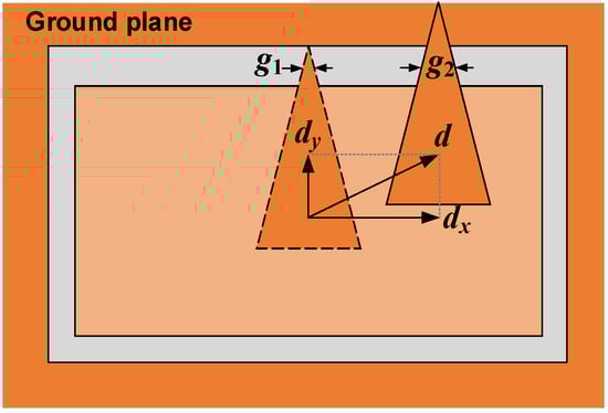 The total movement displacement of the mover is denoted as d, and the displacement components in the horizontal and vertical directions are denoted as dx and dy, respectively. This displacement widens the slit of CSRR but also makes the slit move in the horizontal direction. The change in frequency point caused by horizontal movement is undesirable because it introduces measurement error. For the measurement in the vertical direction, the movement in the horizontal direction is called a lateral movement, and the error caused by this movement is called lateral error.