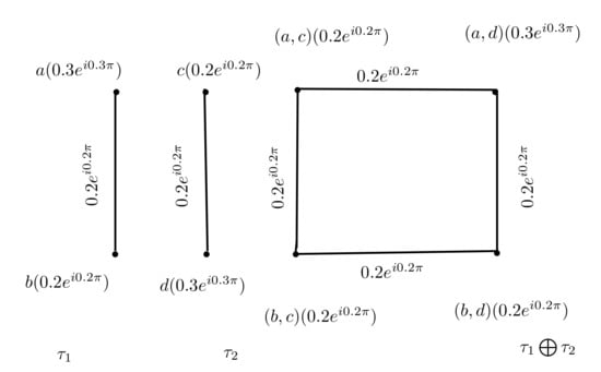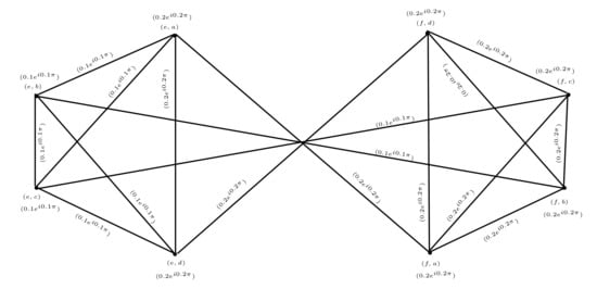 In Figure 18, , , , and . Then, the total degree of vertex in the symmetric difference is calculated by using the following formula: