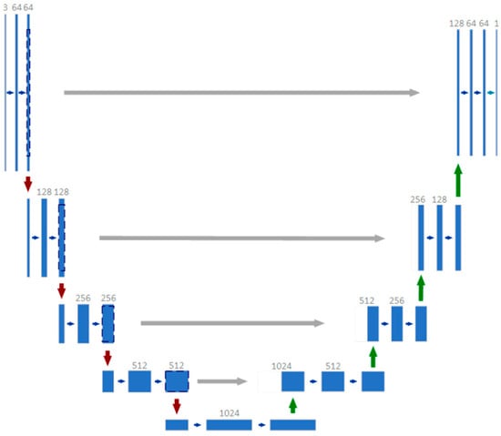 - Ronneberger, O.; Fischer, P.; Brox, T. U-Net: Convolutional networks for biomedical image segmentation. In Medical Image Computing and Computer-Assisted Intervention 2015; Lecture Notes in Computer Science (Including Subseries Lecture Notes in Artificial Intelligence and Lecture Notes in Bioinformatics); Springer: Cham, Switzerland, 2015; Volume 9351, pp. 234–241. [Google Scholar] [CrossRef] [Green Version]