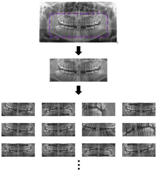 - Muramatsu, C.; Morishita, T.; Takahashi, R.; Hayashi, T.; Nishiyama, W.; Ariji, Y.; Zhou, X.; Hara, T.; Katsumata, A.; Ariji, E.; et al. Tooth detection and classification on panoramic radiographs for automatic dental chart filing: Improved classification by multi-sized input data. Oral Radiol. 2021, 37, 13–19. [Google Scholar] [CrossRef] [PubMed]