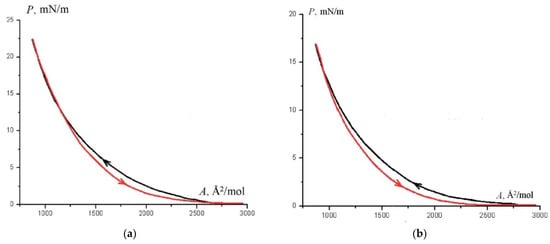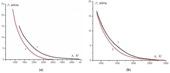 During the formation of monolayers in the presence of a magnetic field, changes in the course of P–A isotherms are observed compared to the situation without a field, see Figure 15.