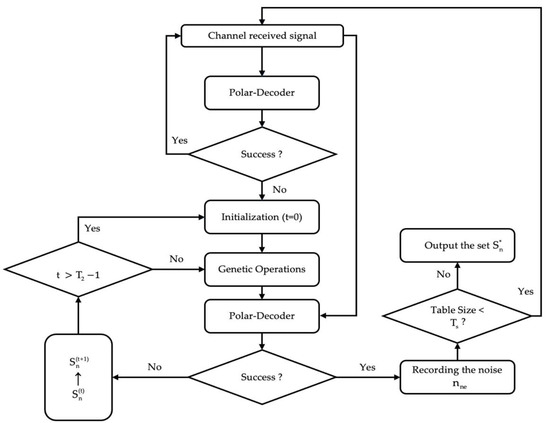 - Wang, X.; Ma, Q.; Li, J.; Zhang, H.; Xu, W. An improved SC flip decoding algorithm of polar codes based on genetic algorithm. IEEE Access 2020, 8, 222572–222583. [Google Scholar] [CrossRef]