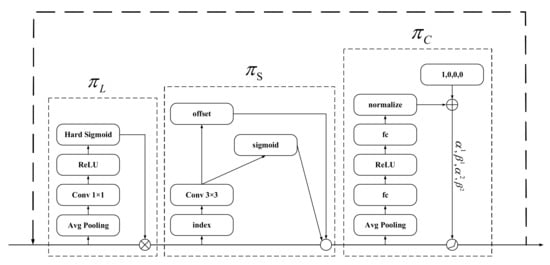 The scale-aware attention function is shown in Equation (3) above, where is a linear function of 1 × 1 convolutional layers and is a hard sigmoid function.