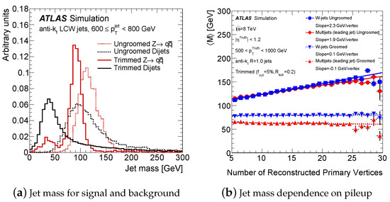 - Krohn, D.; Thaler, J.; Wang, L.T. Jet Trimming. J. High Energy Phys. 2010, 2, 84. [Google Scholar] [CrossRef] [Green Version]