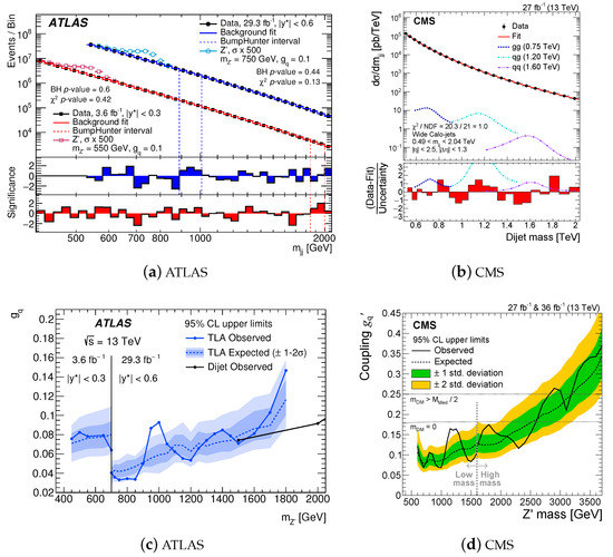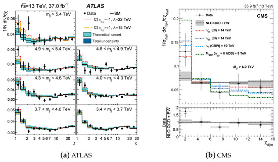 - CMS Collaboration. Search for new physics in dijet angular distributions using proton–proton collisions at = 13 TeV and constraints on dark matter and other models. Eur. Phys. J. C 2018, 78, 789. [Google Scholar] [CrossRef] [PubMed] [Green Version]
