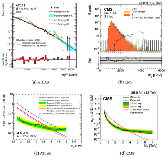 - ATLAS Collaboration. Search for tt¯ resonances in fully hadronic final states in pp collisions at = 13 TeV with the ATLAS detector. J. High Energy Phys. 2020, 10, 61. [Google Scholar] [CrossRef]