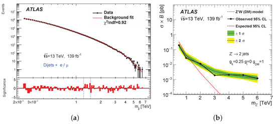 - ATLAS Collaboration. Search for new resonances in mass distributions of jet pairs using 139 fb-1 of pp collisions at = 13 TeV with the ATLAS detector. J. High Energy Phys. 2020, 3, 145. [Google Scholar] [CrossRef] [Green Version]