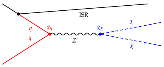When searching for some types of particles beyond the Standard Model, it is important that the new particle is not produced in isolation, but rather it is produced together with an initial-state radiated (ISR) Standard Model particle. This alters the momentum balance of the event, which is the entire basis of the searches described in Section 5, and which also allows for circumventing experimental challenges faced by some of the searches discussed in Section 4. As the initial collision at the LHC occurs between quarks and/or gluons, the most probable source of ISR radiation is also a quark or gluon, due to the dominance of the strong coupling. In such cases, there is therefore a statistical advantage to hadronic final states, which can lead to hadronic signatures dominating the sensitivity to new physics when the statistical sensitivity is the primary limitation. Examples of how this can work for a possible new particle produced through quark–antiquark annihilation include the radiation of a gluon before the annihilation occurs, or one of the quarks in the annihilation originating from a gluon splitting process. Feynman diagrams demonstrating these specific examples are provided in Figure 2.