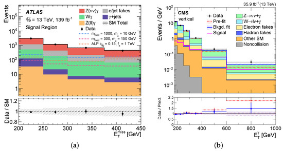 - CMS Collaboration. Search for new physics in final states with a single photon and missing transverse momentum in proton-proton collisions at = 13 TeV. J. High Energy Phys. 2019, 2, 74. [Google Scholar] [CrossRef] [Green Version]