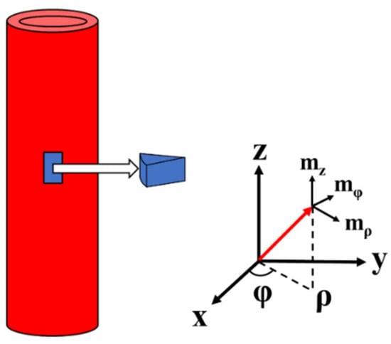 In order to calculate , we unrolled the outermost layer of the nanotube into a planar film, as shown in Figure 6a, and then transformed the system magnetic moments into ones expressed in a new Cartesian coordinate :