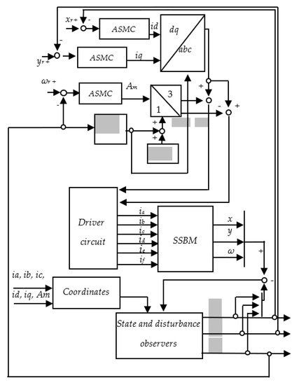- Peng, C.; Fang, J.; Xu, X. Mismatched Disturbance Rejection Control for Voltage-Controlled Active Magnetic Bearing via State-Space Disturbance Observer. IEEE Trans. Power Electron. 2015, 30, 2753–2762. [Google Scholar] [CrossRef]