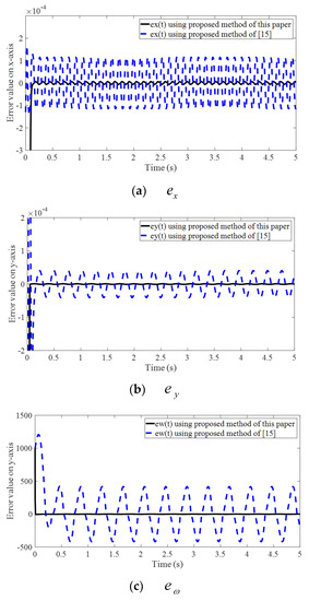 The tested disturbance for this work and paper [15] affected on the performances of tracking error on movements and rotation. Figure 7 shown that the proposed method in this paper is better than the previous one.