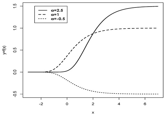 Figure 1 shows the behavior of the Gompertz function for different values of “a”.