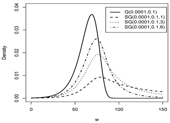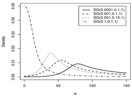 2.5. Expected Value, Variance, Skewness and Kurtosis of a Gompertz Slash Distributed Random Variable W