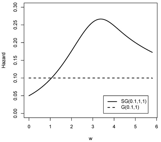 Two important measures of reliability are the reliability function and the hazard (failure) rate function. The reliability function of a random variable Y is defined by , where denotes the cdf of Y. The hazard rate function is defined by . For the distribution, as a direct consequence of Proposition 1 and Proposition 2, both measures of reliability can be expressed in closed form. The corresponding expressions are easily obtained.