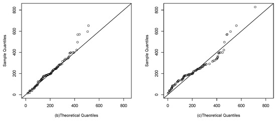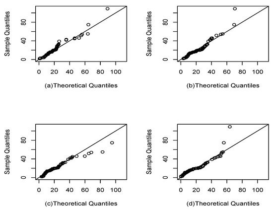 - Quesenberry, C.P.; Kent, J. Selecting among probability distributions used in reliability. Technometrics 1982, 24, 59–65. [Google Scholar] [CrossRef]