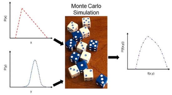 Sampling-based techniques predominantly include Monte Carlo simulation (MCS) and its variants. As shown in Figure 3, MCS generates random variables from probability density functions to estimate unknown parameters and then calculate their expected value and variances. Based on the law of large numbers and the central limit theorem, one usually works with the multivariable normal distribution. In practice, the MCS procedure remains in essence identical regardless of the complexity or the computational burden of the simulation model. Theoretically, MCS requires extensive samplings (usually 106 runs or greater) to procure reliable statistics, which implies that it is often computationally expensive for complex engineering problems [84]. By updating a Markov chain with desired distribution as the stationary distribution, the Markov Chain Monte Carlo (MCMC) method aims to recover the properties of an unknown probability distribution and is deemed an important complement to the problems with known probability distribution. Both MCS and MCMC have been widely applied to obtain reliable results in various domains [85,86,87].