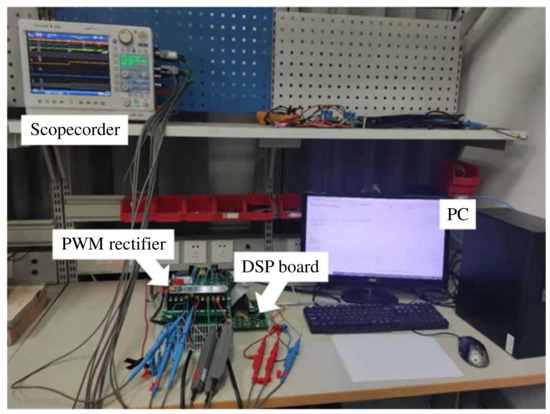 In this section, the proposed two MFPPC methods are experimentally tested on a two-level platform shown in Figure 6. The experimental platform is composed of a three-phase two-level PWM rectifier, a digital signal processing (DSP) control board, a personal computer (PC), a scopecorder, a programmable AC source, three-phase filter inductance, and load resistance. For the aim of comparison, the results obtained from conventional model-based MPPC are also presented. The parameters of the PWM rectifier and control systems are listed in Table 3. To achieve the instantaneous power factor operation of the system, the reactive power reference value was set to zero.