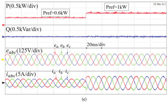 Experimental results of transient responses when increases from 0.6 kW to 1 kW. (a) Conventional MPPC, (b) proposed basic MFPPC, and (c) proposed improved MFPPC.