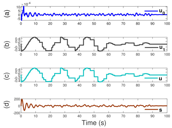 ER technique: (a) evolution of RL-based control law ; (b) evolution of SMC input ; (c) evolution of composite control law u; (d) evolution of sliding mode surface S.