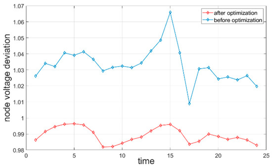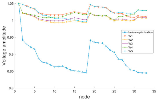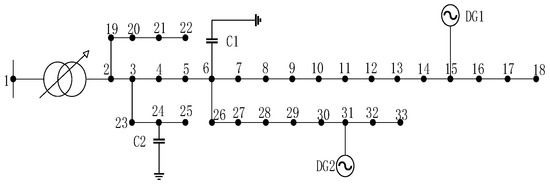 - The active power loss, voltage deviation, and reactive power compensation cost are taken as the optimization objectives, and the multi-objective reactive power optimization mathematical model of the distribution network of a distributed generation is established.