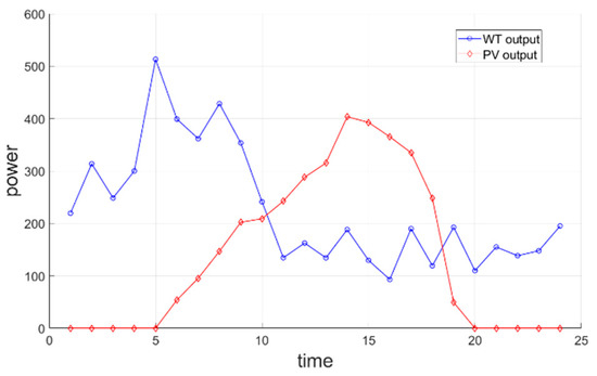 | Time | Light Intensity (W/m2) | Temperature (℃) | Wind Speed (m/s) | PV Output (kW) | WT Output (kW) | Time | Light Intensity (W/m2) | Temperature (℃) | Wind Speed (m/s) | PV Output (kW) | WT Output (kW) |