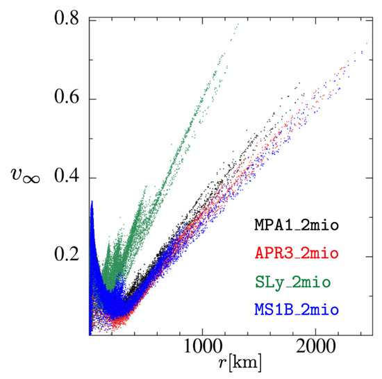- Shibata, M.; Fujibayashi, S.; Hotokezaka, K.; Kiuchi, K.; Kyutoku, K.; Sekiguchi, Y.; Tanaka, M. Modeling GW170817 based on numerical relativity and its implications. Phys. Rev. D 2017, 96, 123012. [Google Scholar] [CrossRef]